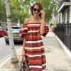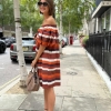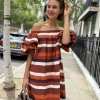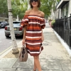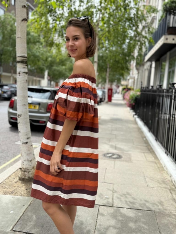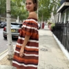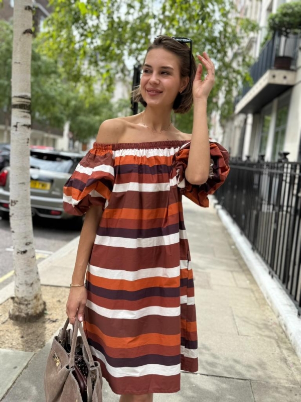 Sienna – Off Shoulder Striped Dress In Brown And Orange
