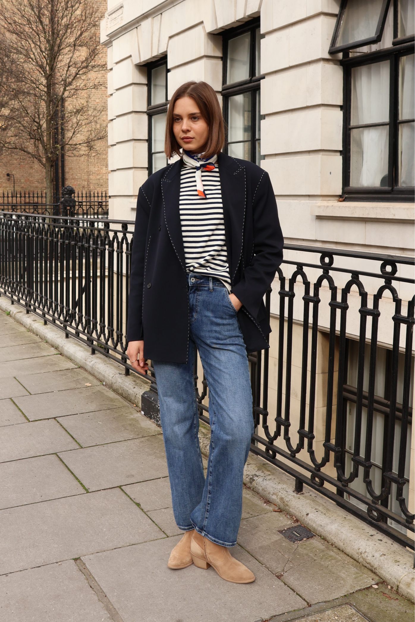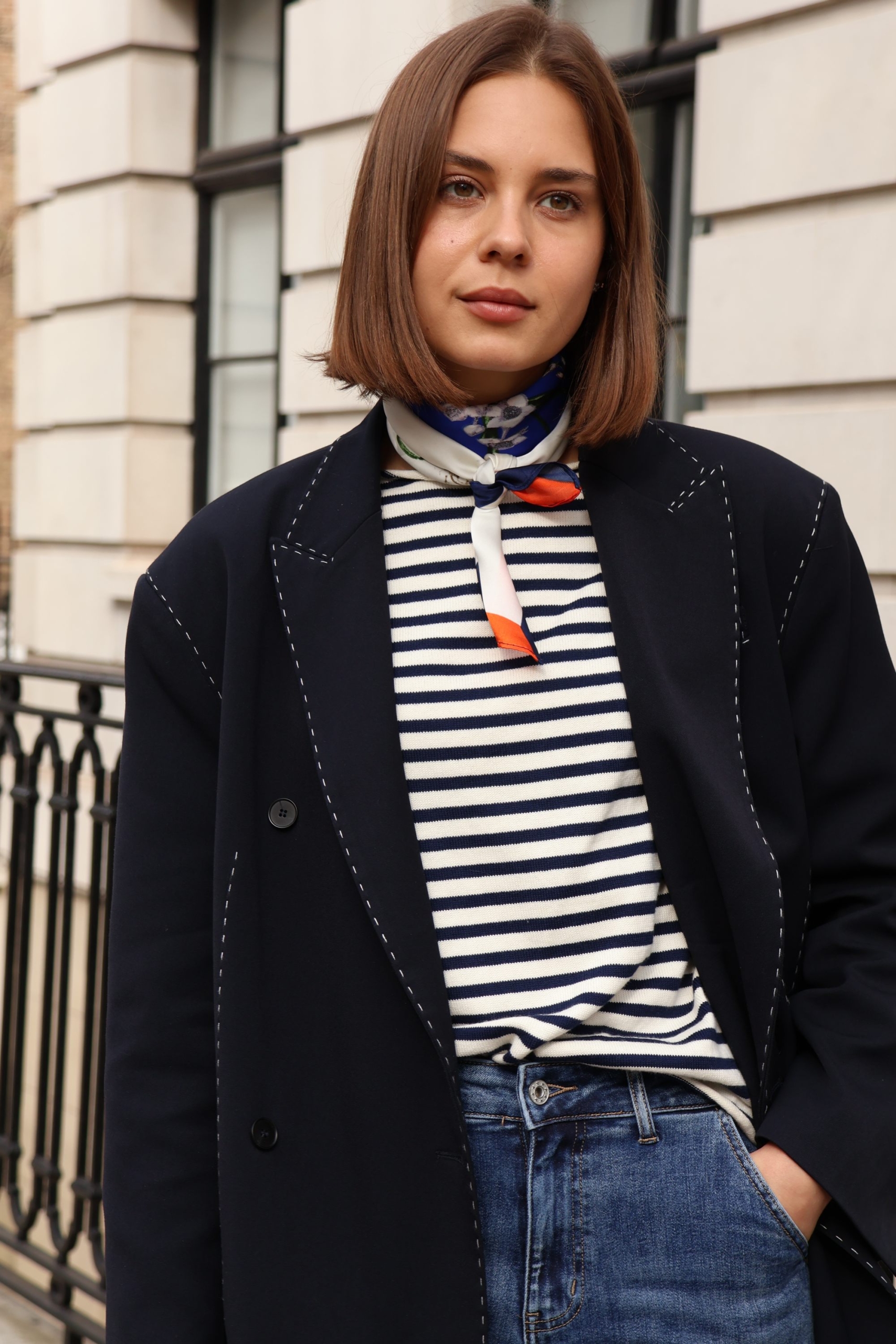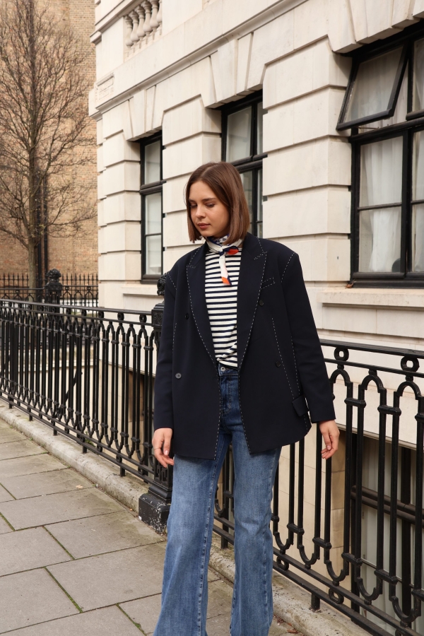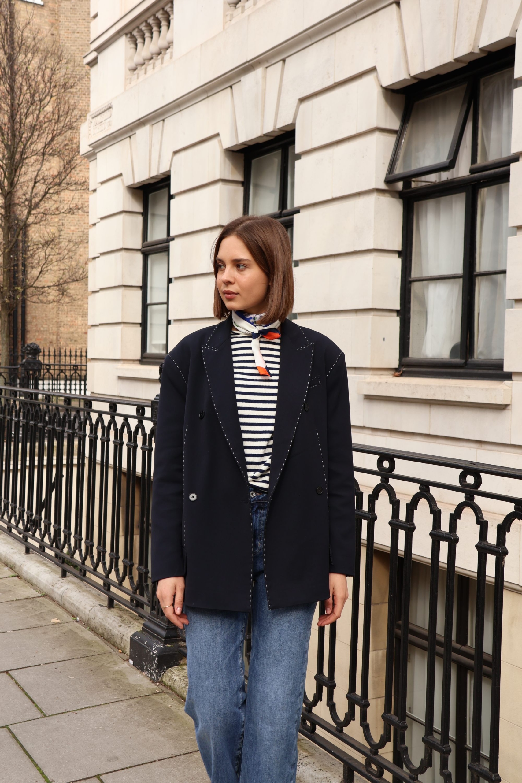 The Sienna blazer is a refined take on modern tailoring, designed in a deep navy hue with an effortlessly oversized silhouette. Subtle contrast stitching adds a distinctive, elevated detail while maintaining a clean and versatile look. Crafted for both structure and comfort, it layers seamlessly over casual and tailored pieces alike. Whether styled with denim or coordinated separates, the Sienna blazer brings a polished yet relaxed edge to any outfit.