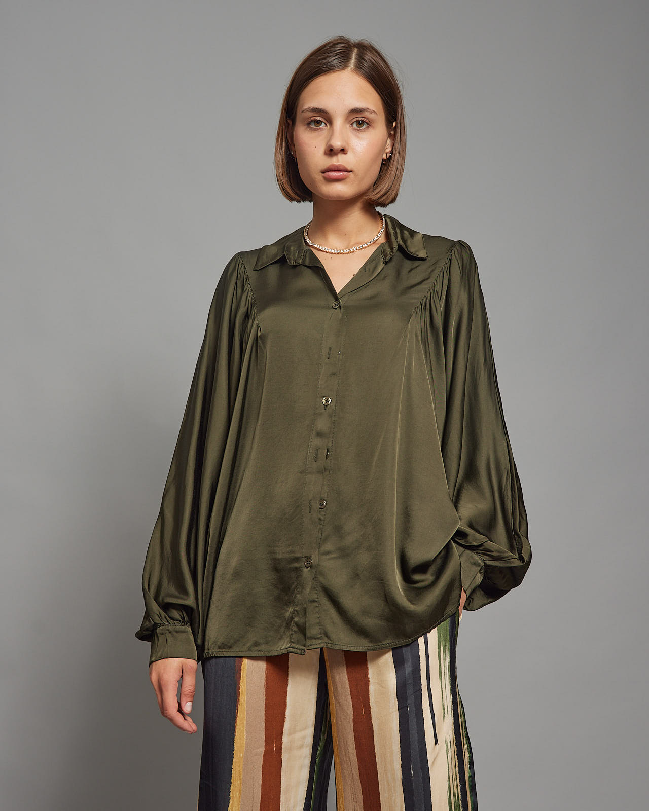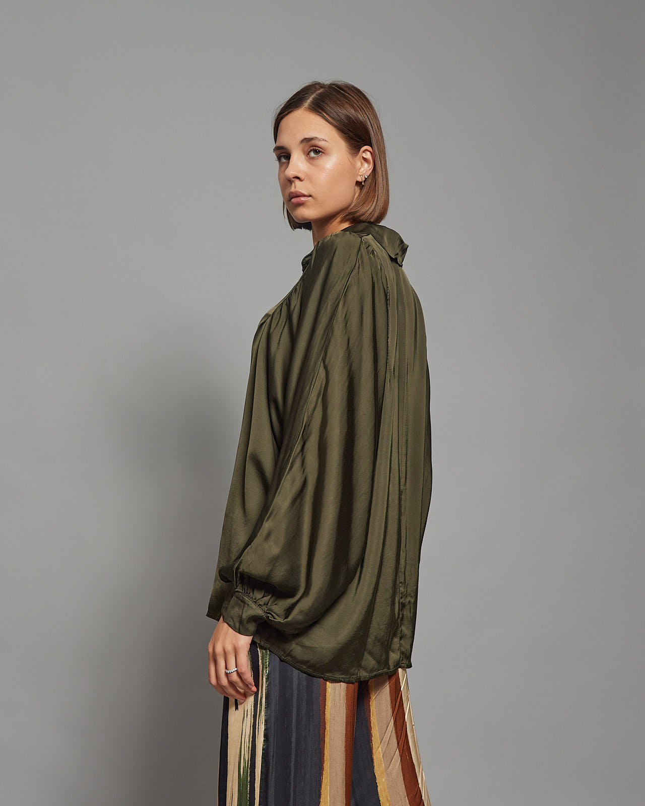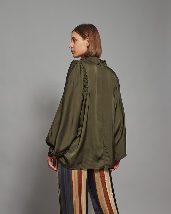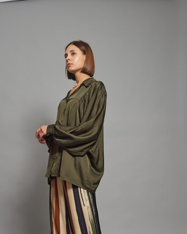 It’s the lustrous and fluid  fabric that makes Sofia top feel at once elevated and relaxed. This shirt is ideal to style with tailoring but it will look just as good worn with more casual outfits. Cut for a slightly loose fit, it’s made from silk crepe with a classic pointed collar and has a big detailed sleeves. Tuck yours into fitted skirts or tailoring.