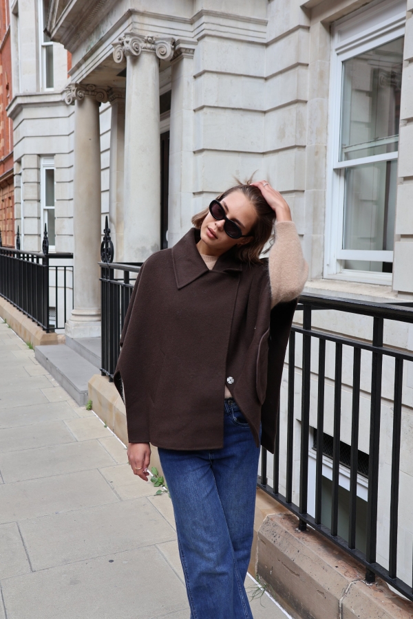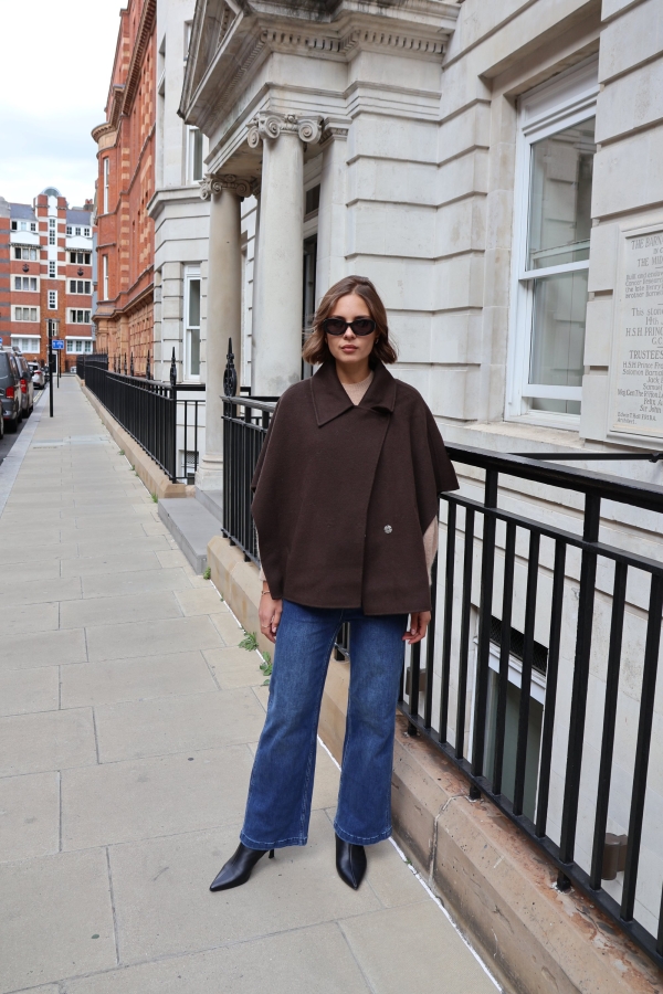 Sonia cape is such a chic option when you want an extra layer that won’t hide your outfit. It’s been crafted  from wool and layocell blend and has a  has a cosy collar.  Style yours with a knitted dress and ankle boots. Layer yours up or down – it’ll be a trustee companion for the long haul.