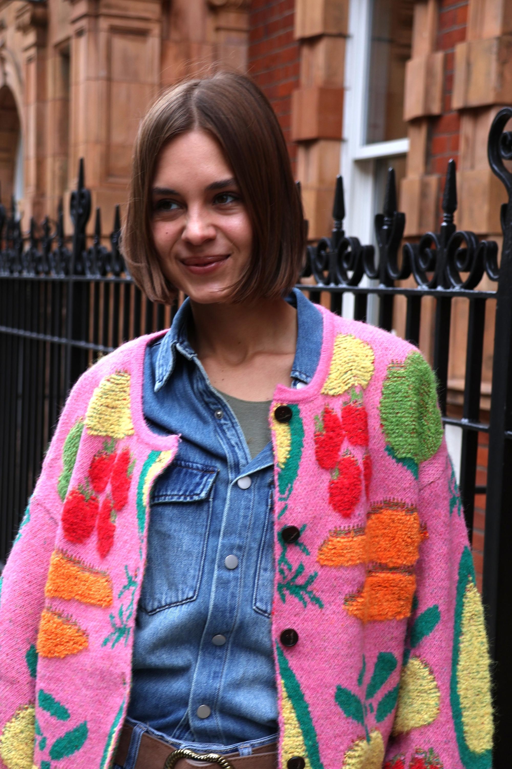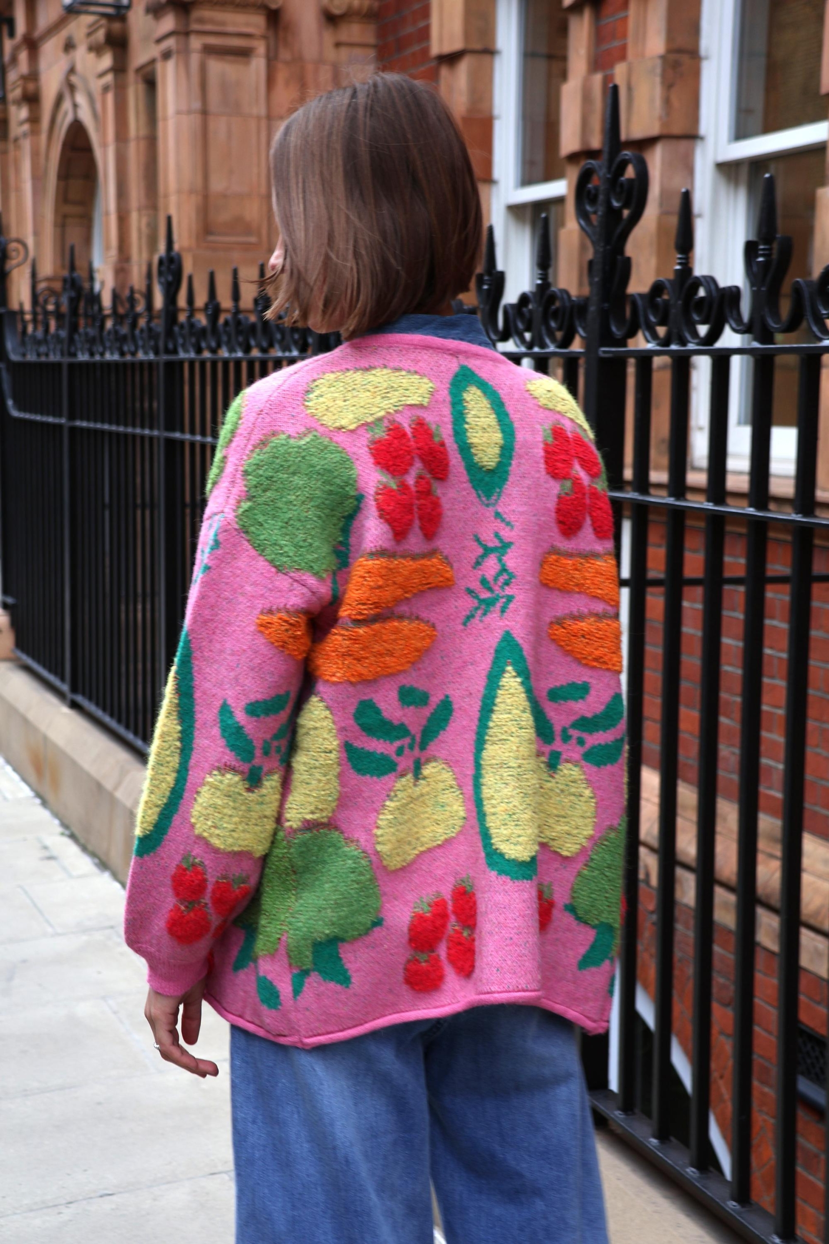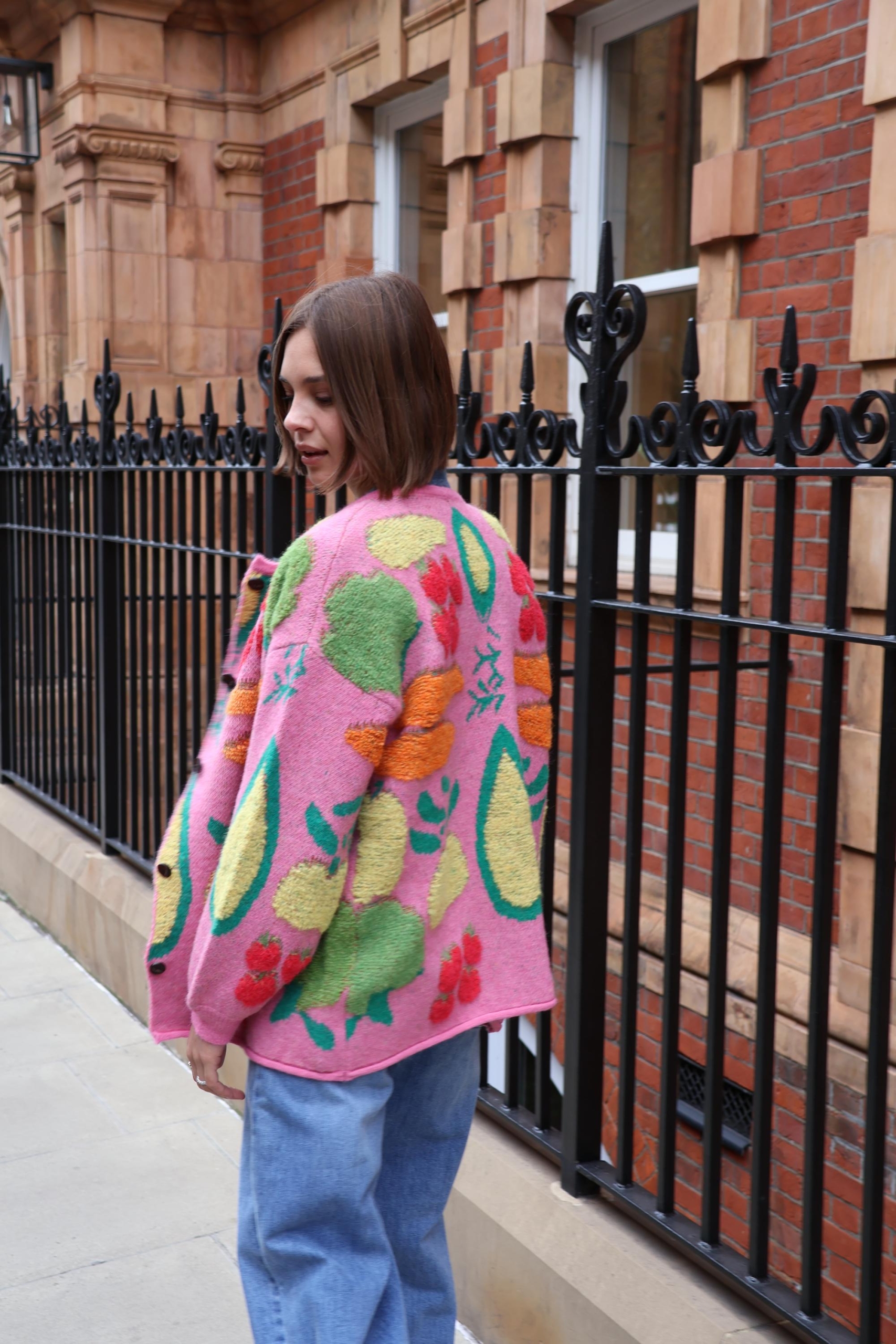 Stella cardigan is jacquard-knitted with colourful flowers and geometric shapes that give it an instantly bohemian feel. It’s made from a soft, cosy blend of acrylic. It’s designed for a loose fit . Slip it on over a tank and leave it undone at the hem for a laid-back take. It has a loose silhouette that’s perfect for layering. The spring hue will coordinate well with denim and floral-print dresses alike.