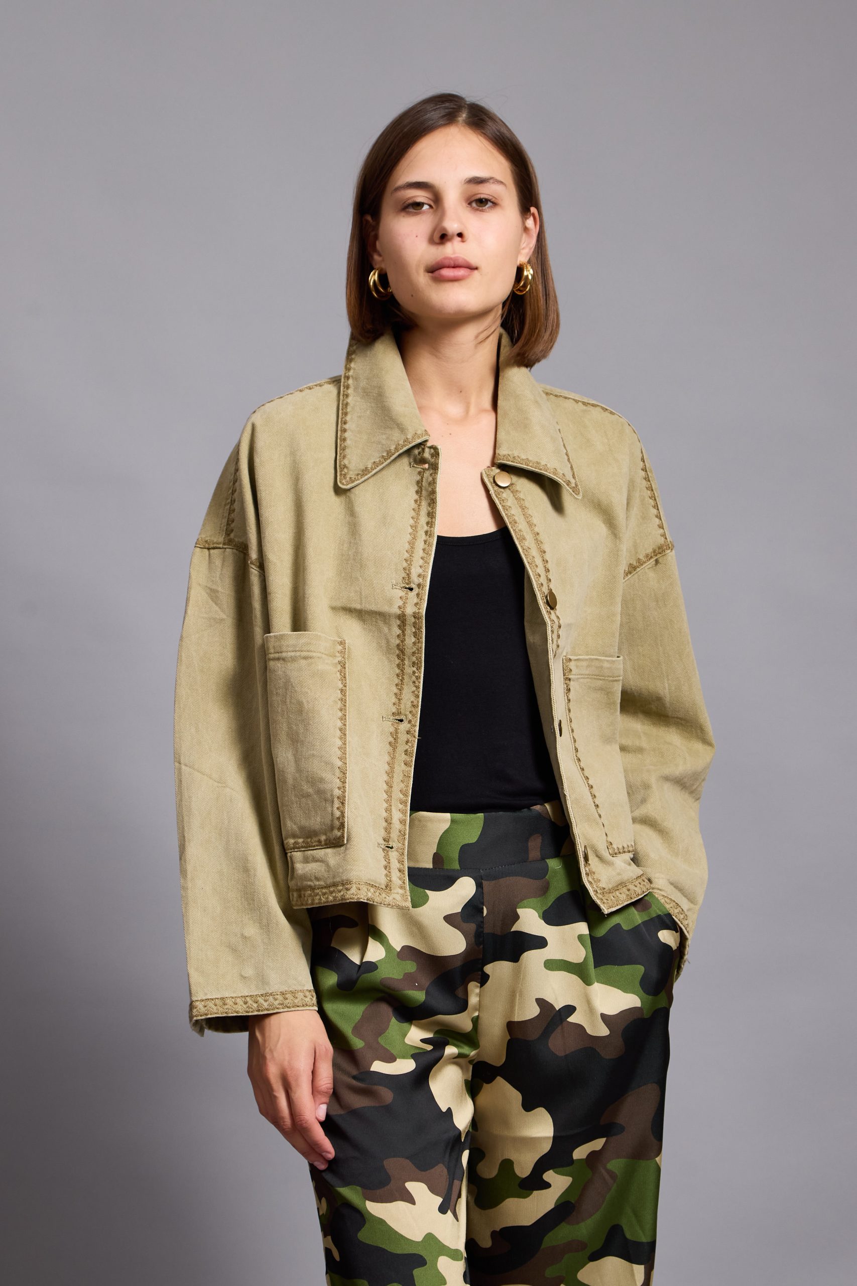 Stina jacket is cool outwear style that we just can’t get enough of . It’s made from cotton-twill and has two front patch pockets and gleaming silver embellishment . The jacket is cut in a loose silhouette from cotton-twill defined by oversized pockets at the front . Equally functional and chic, it’s made from durable cotton and has a variety of cargo pockets. You’ll reach for it often during the transitional months.