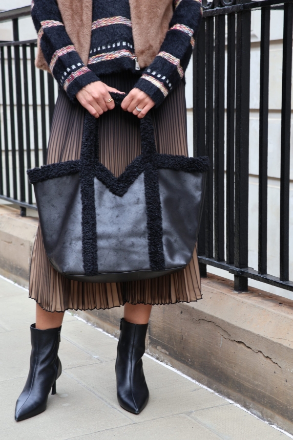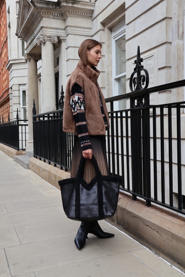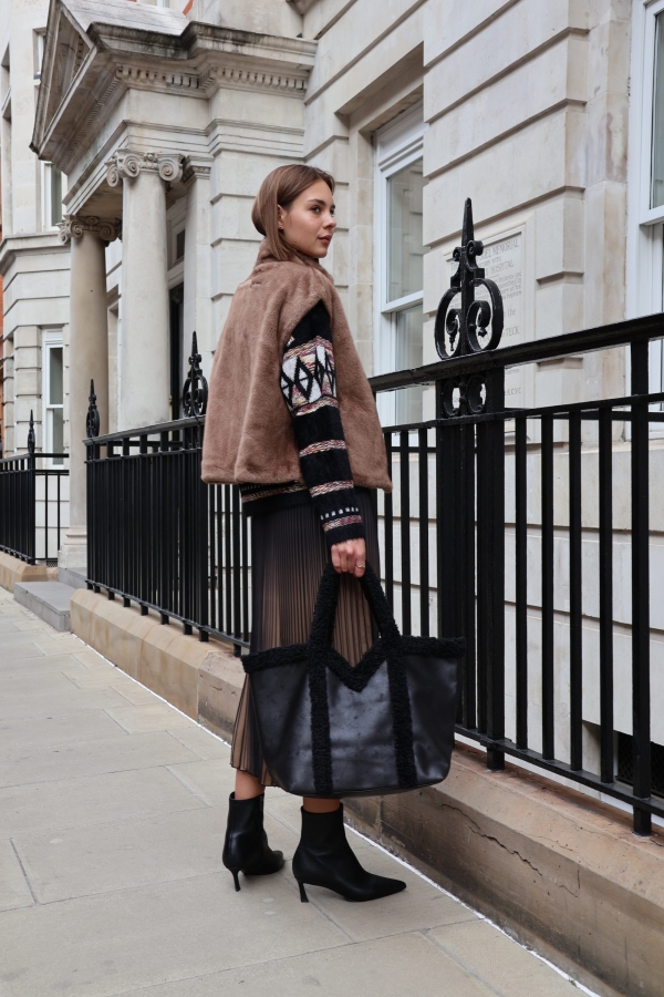 The tote silhouette bag is made from faux fur and it is compact enough to keep your everyday essentials organised. The Tara bag is stylish addition to your wardrobe. There’s a zipped pocket inside, which will keep your apartment key and lipstick from floating around.