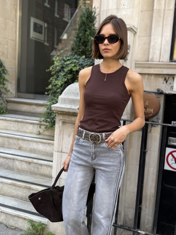 Ylondon tank is a favorite among fans and off-duty models alike. Soft, flattering and versatile, it’s sustainably made from stretch-cotton jersey  for a close fit with a tightly ribbed finish and racer-style straps at the front and back. It’s a staple you’ll want in every color, so make sure to pick up the grey version, too.