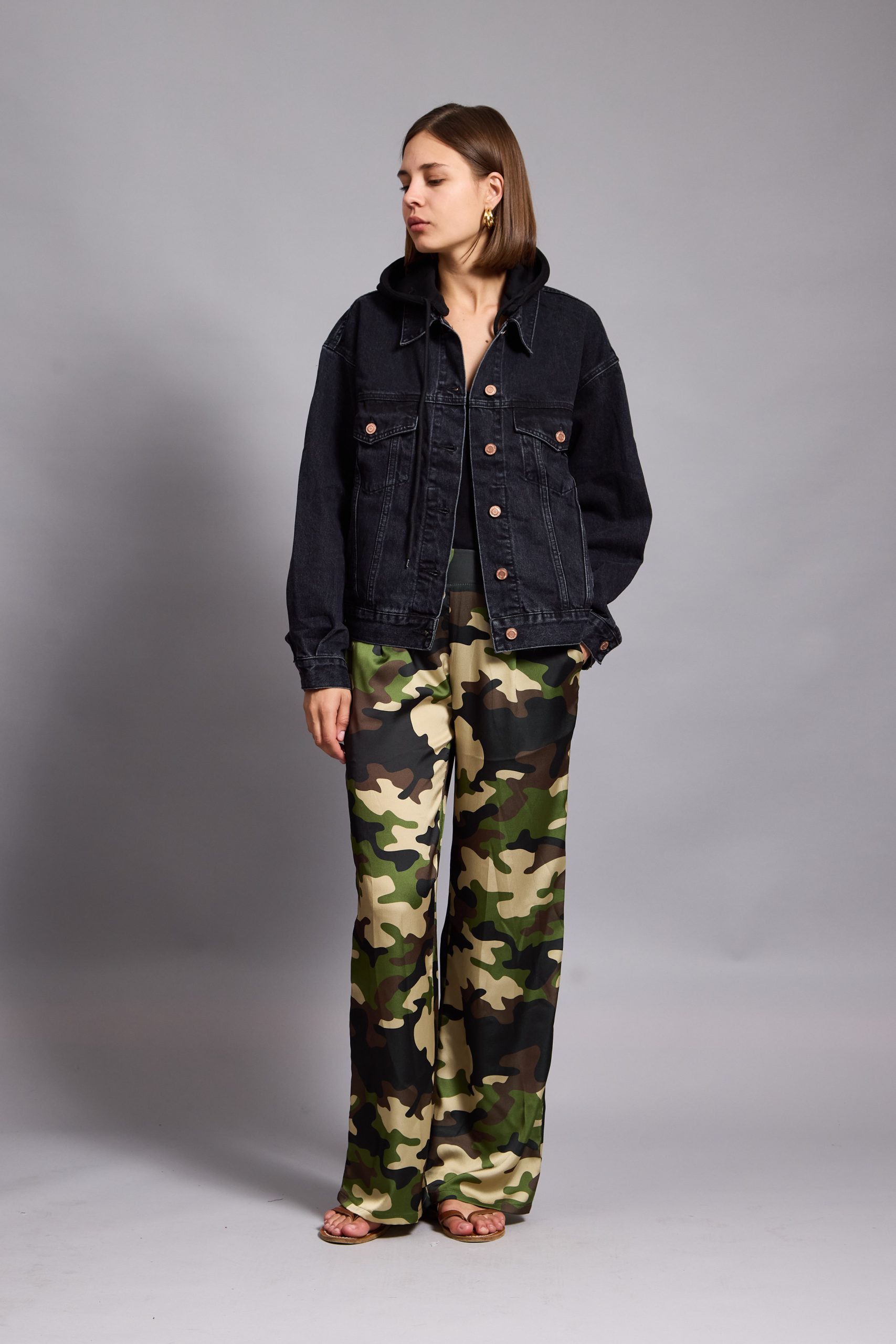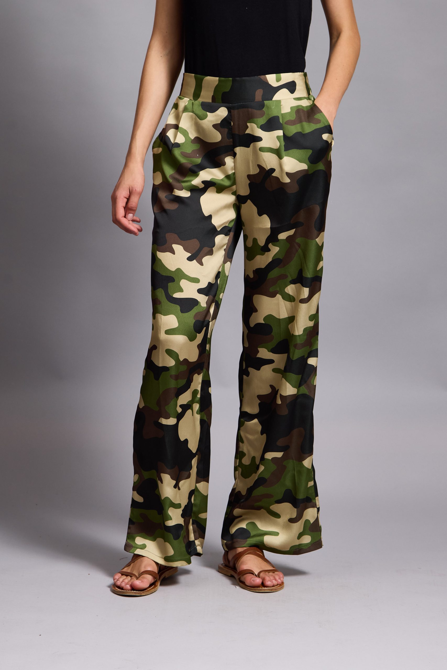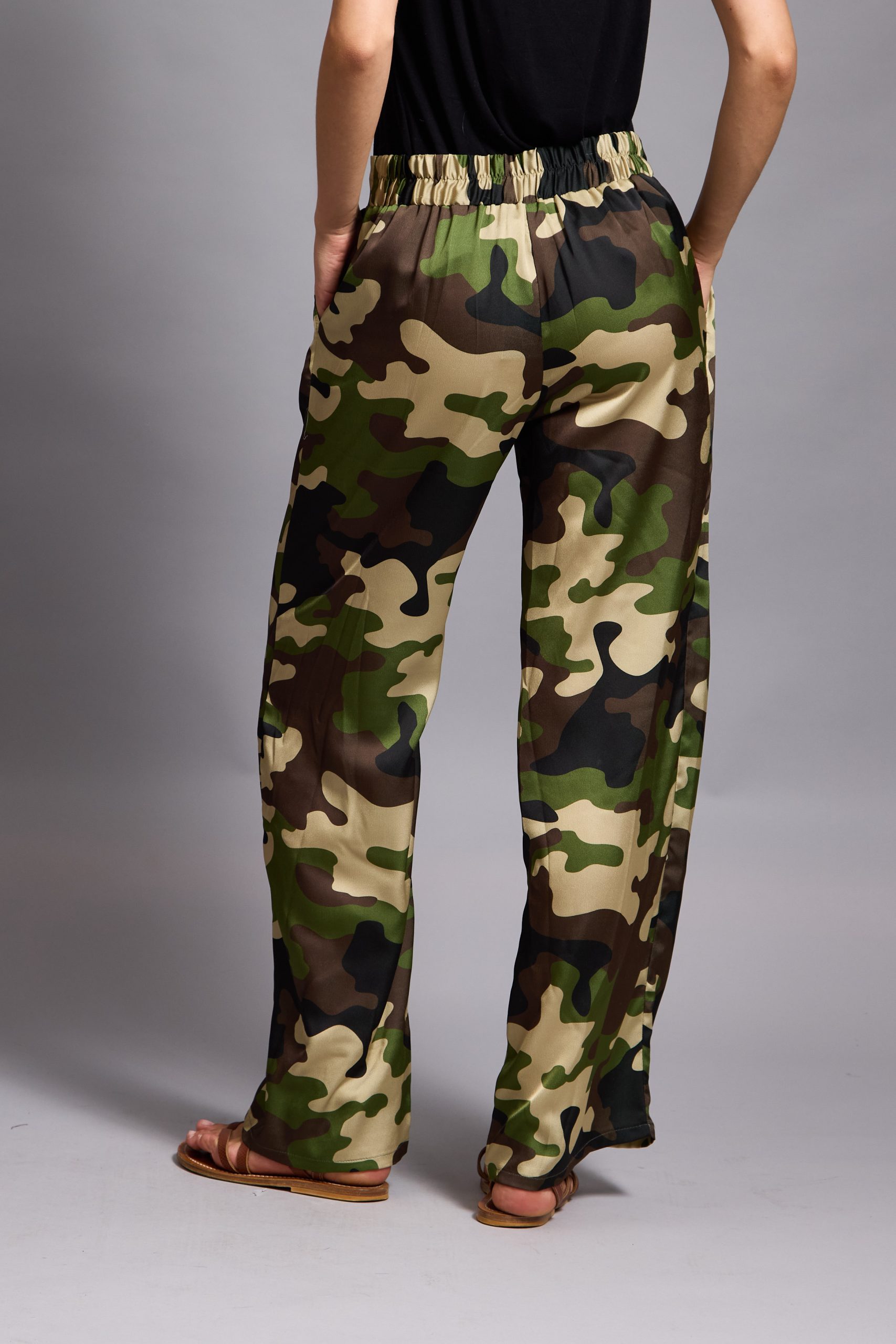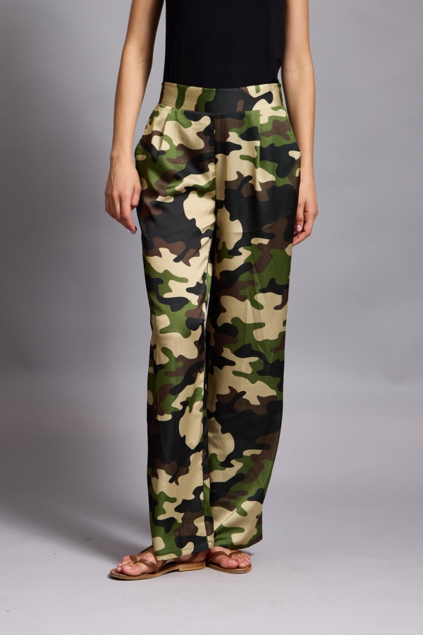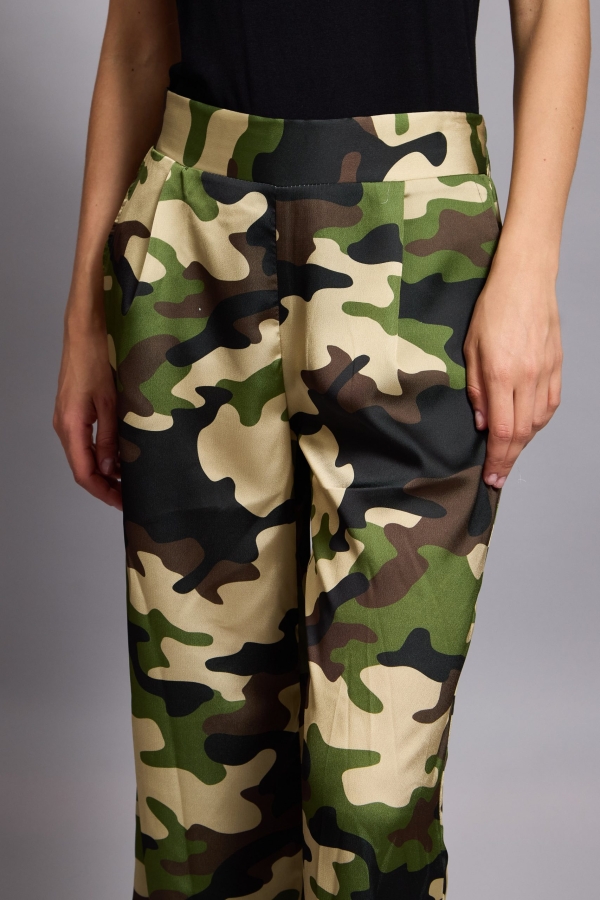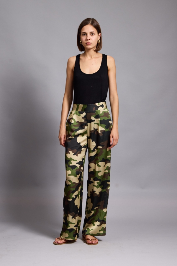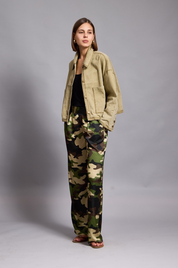 Tatum – Satin Tapered Pants camouflage in khaki