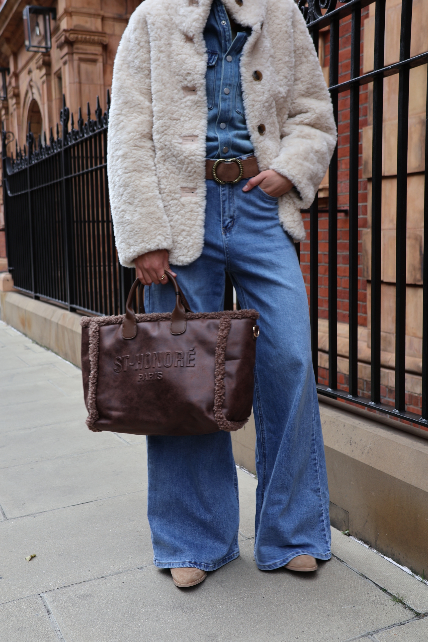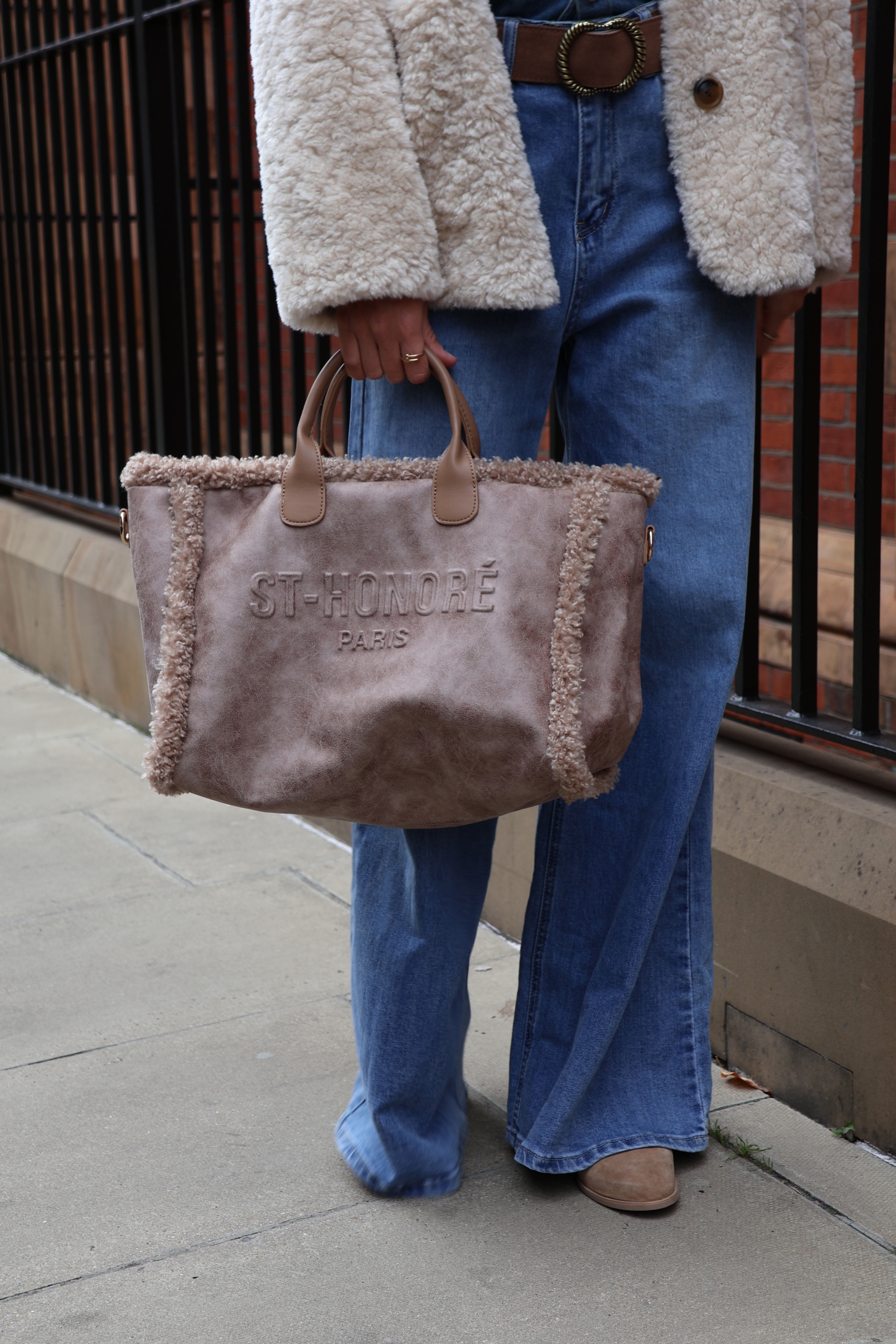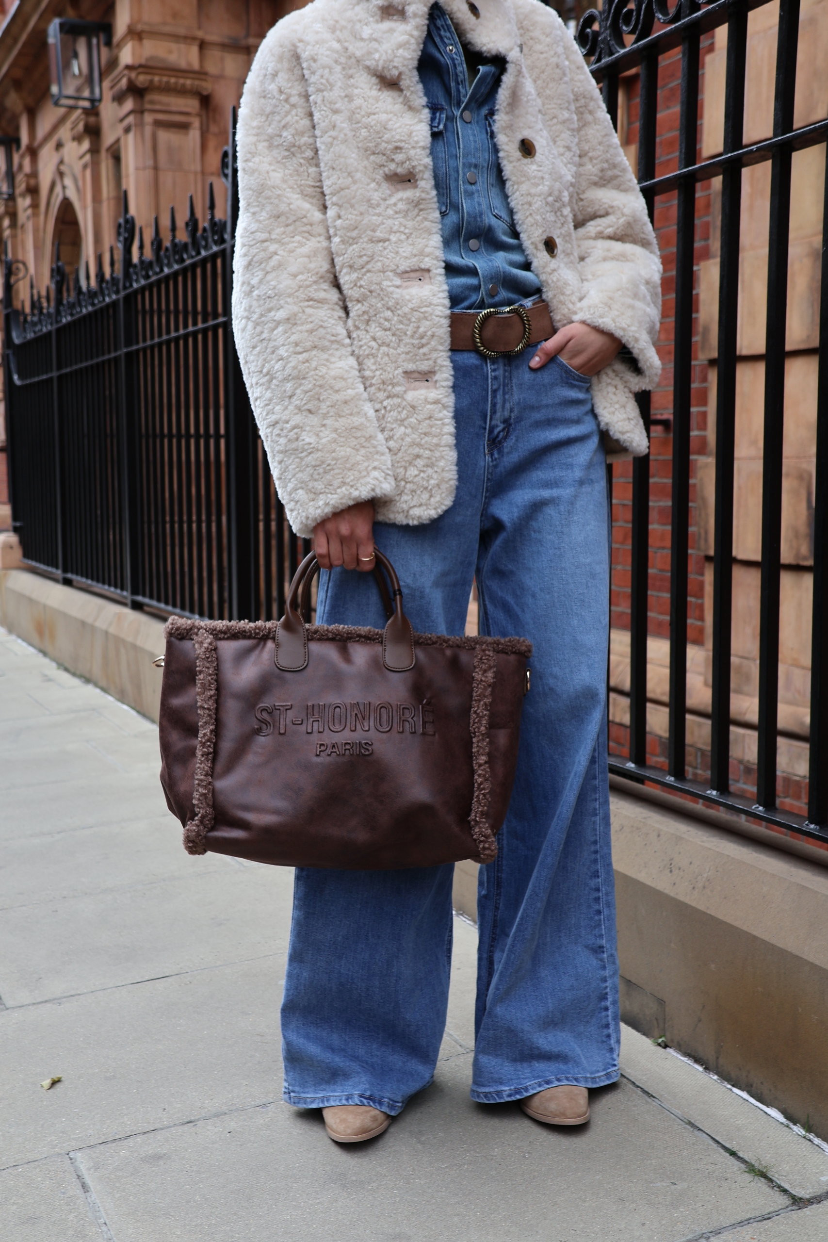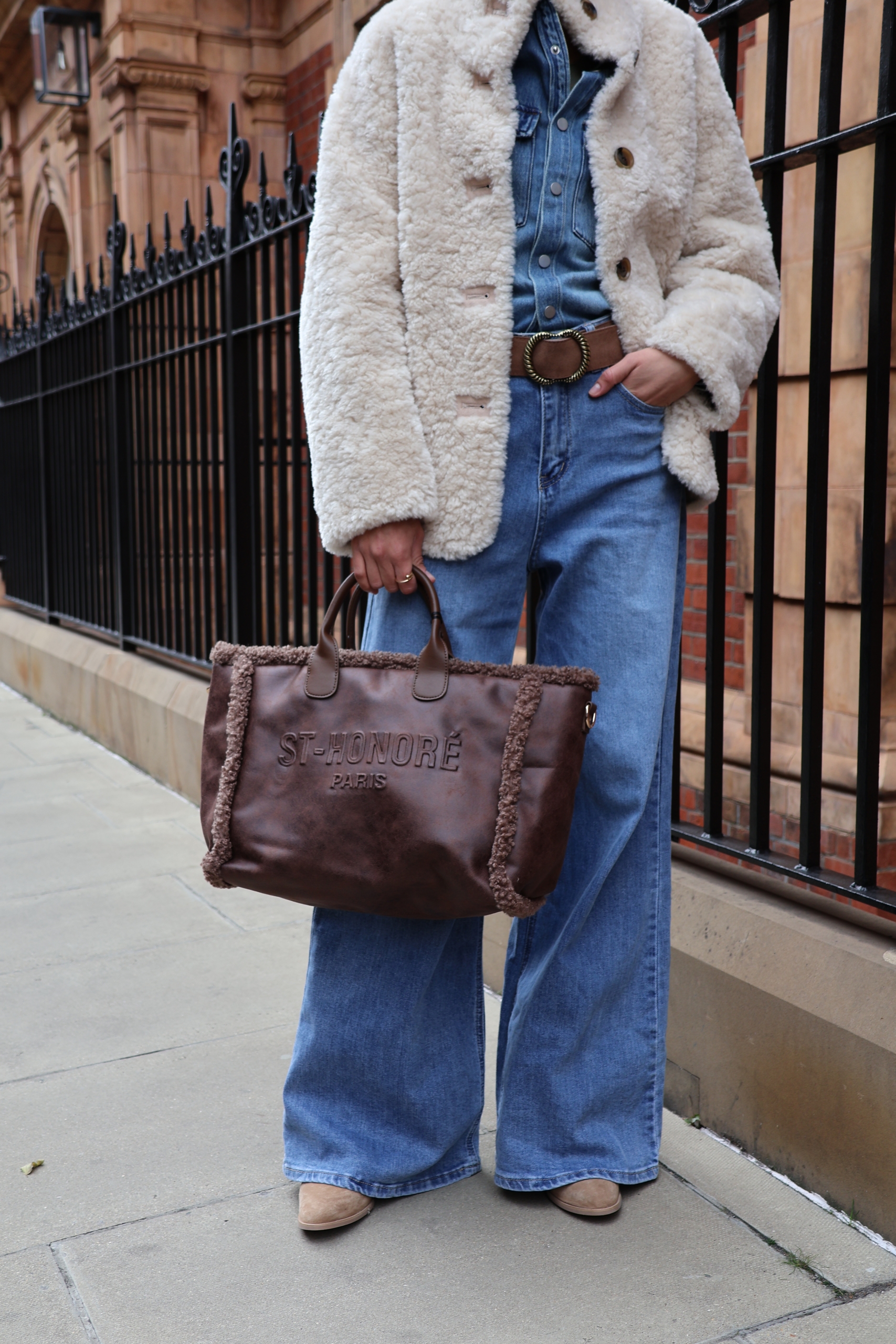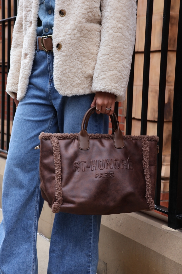 The tote silhouette bag is made from faux fur and it is compact enough to keep your everyday essentials organised.  The Tara  bag is stylish addition to your wardrobe. There’s a zipped pocket inside, which will keep your apartment key and lipstick from floating around.