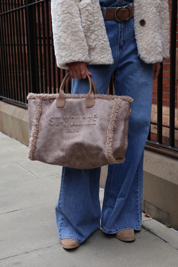 The tote silhouette bag is made from faux fur and it is compact enough to keep your everyday essentials organised.  The Tara  bag is stylish addition to your wardrobe. There’s a zipped pocket inside, which will keep your apartment key and lipstick from floating around.