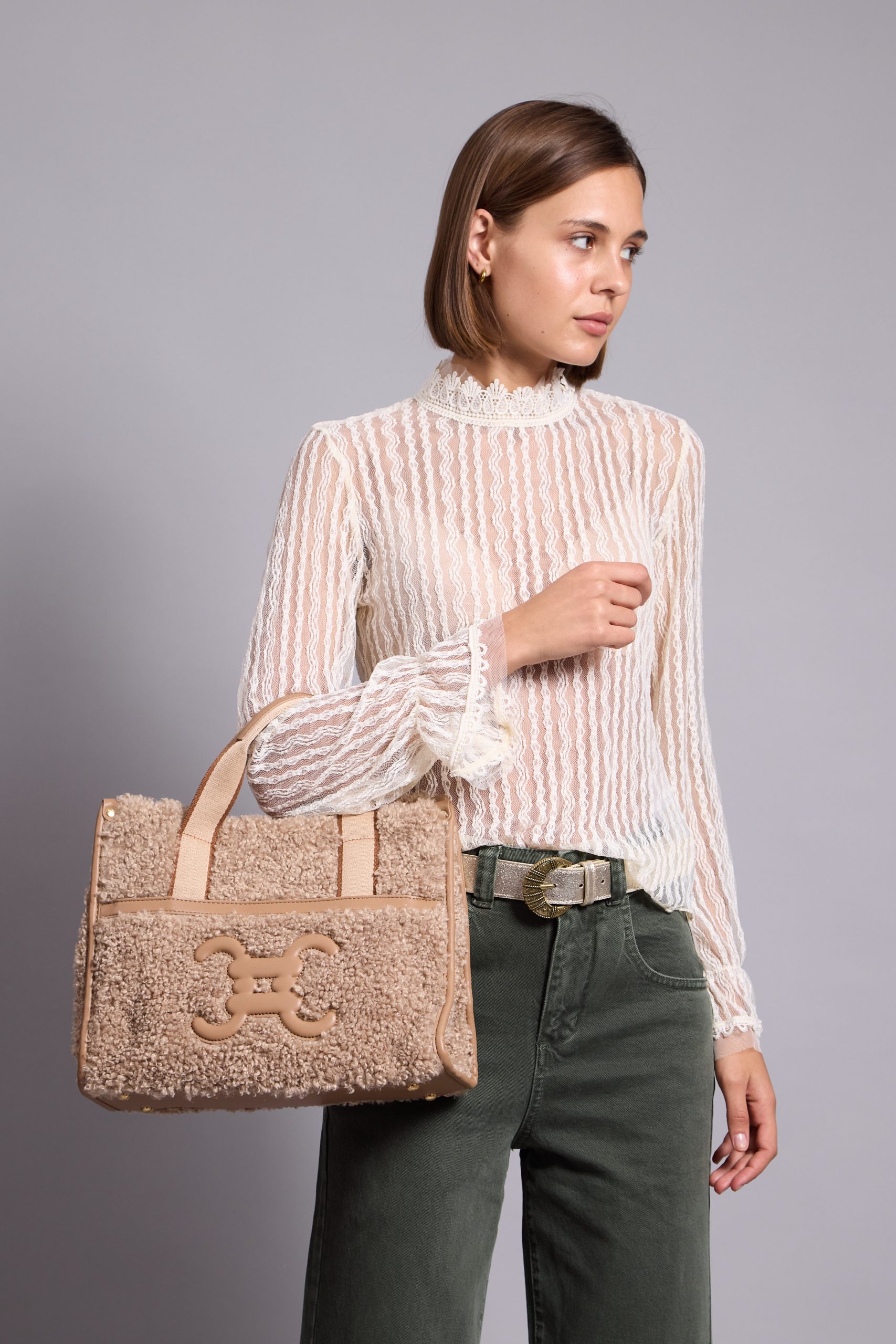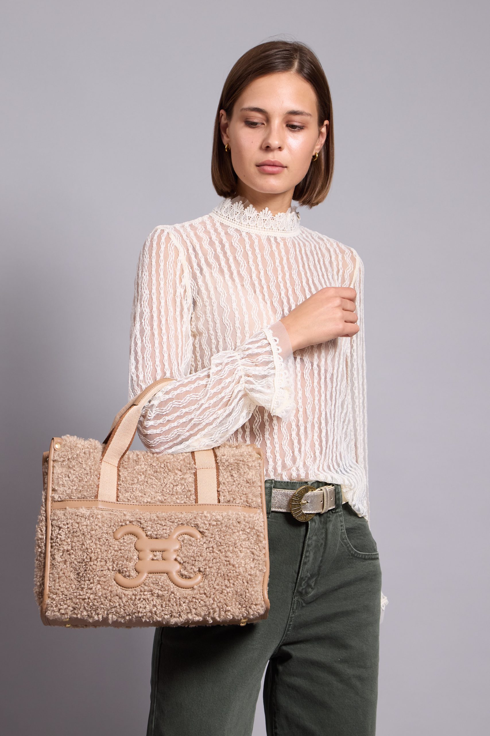 The tote silhouette bag is made from faux fur and it is compact enough to keep your everyday essentials organised. The Tess bag is stylish addition to your wardrobe. There’s a zipped pocket inside, which will keep your apartment key and lipstick from floating around.