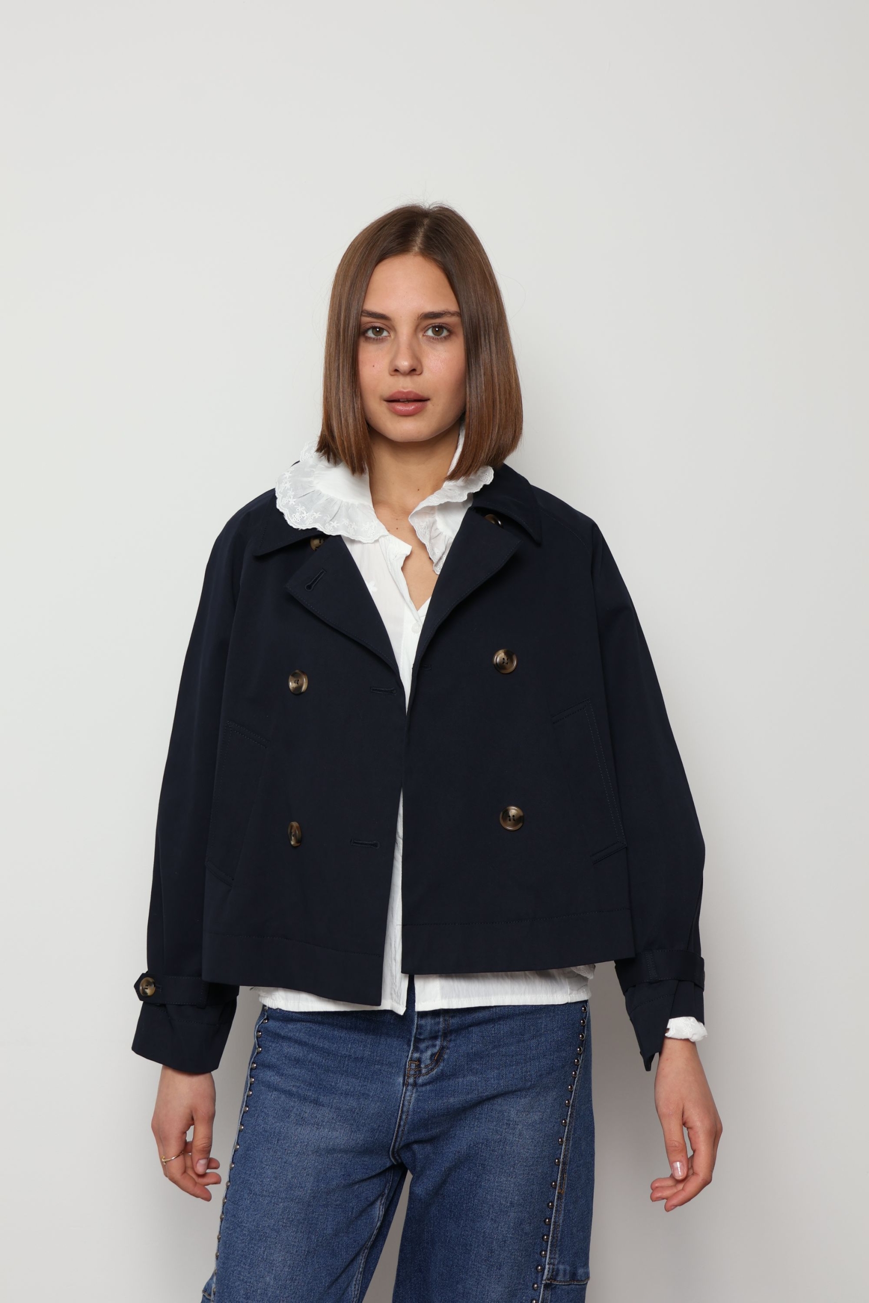 The Tia jacket is a modern wardrobe essential, crafted from breathable cotton in a rich navy hue. Designed with a relaxed, boxy silhouette, it offers an effortless, contemporary look that layers easily over any outfit. The clean lines and structured shape make it perfect for both casual and smart styling, while the lightweight fabric ensures all-day comfort. A versatile piece you’ll reach for season after season.