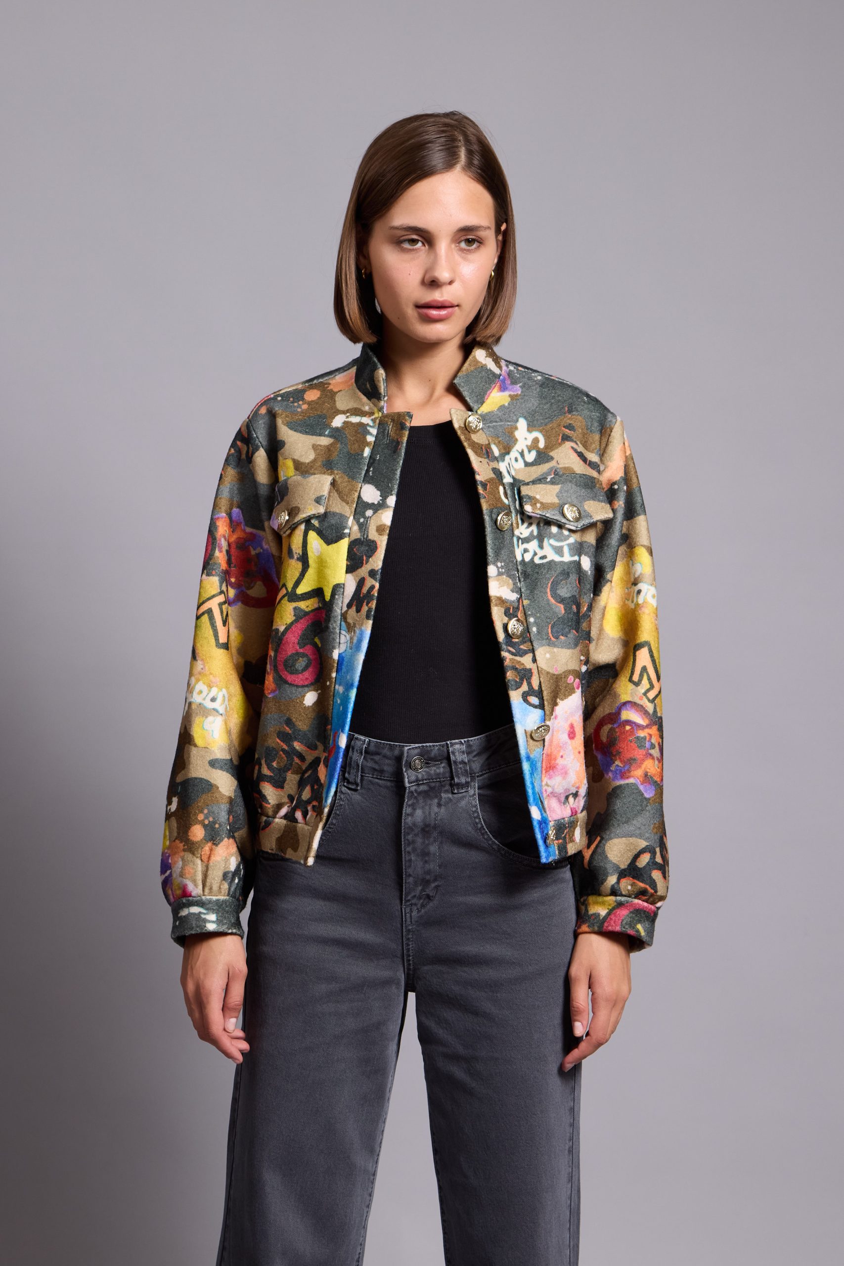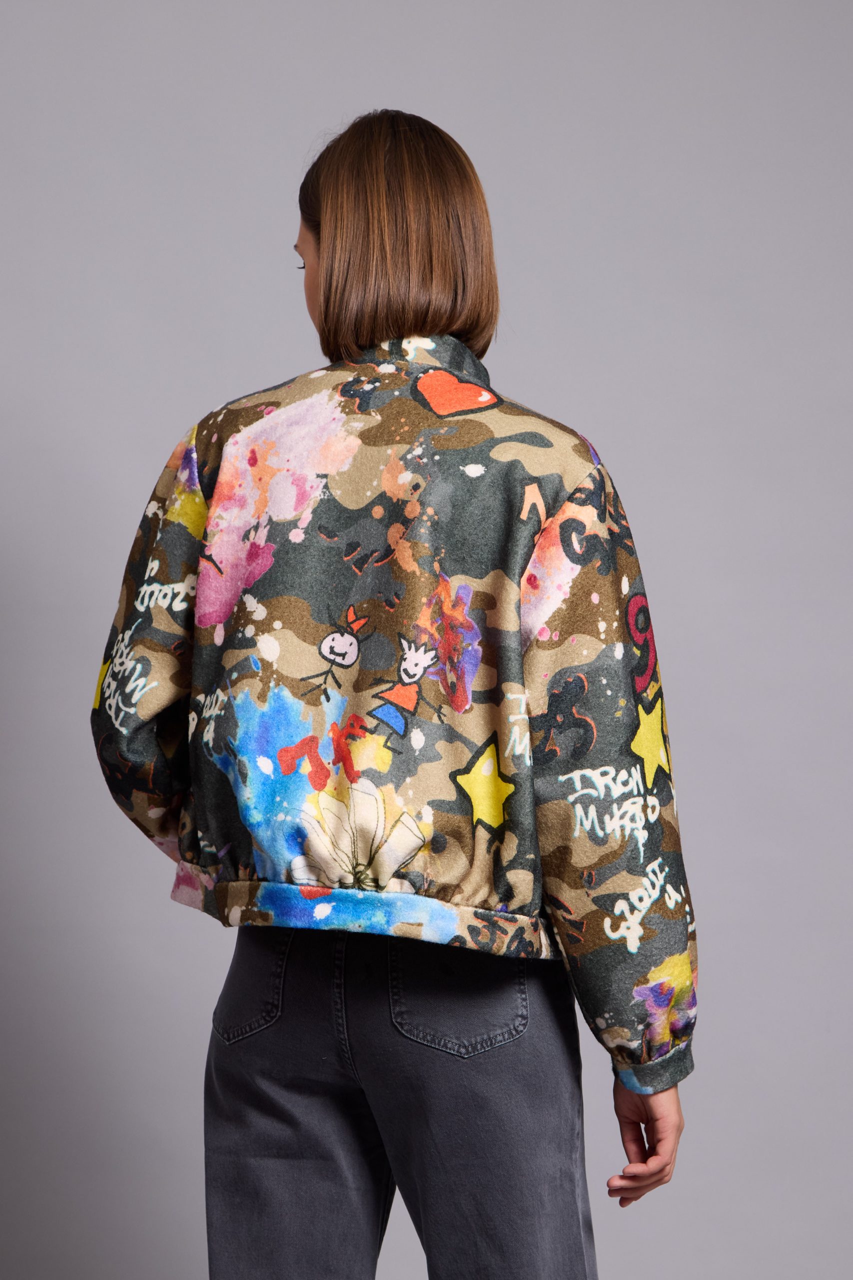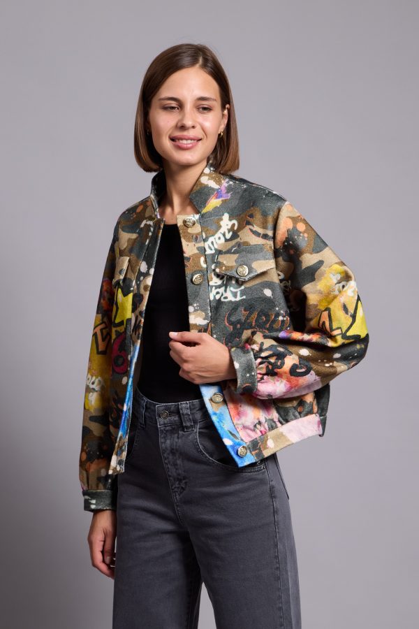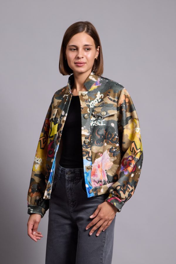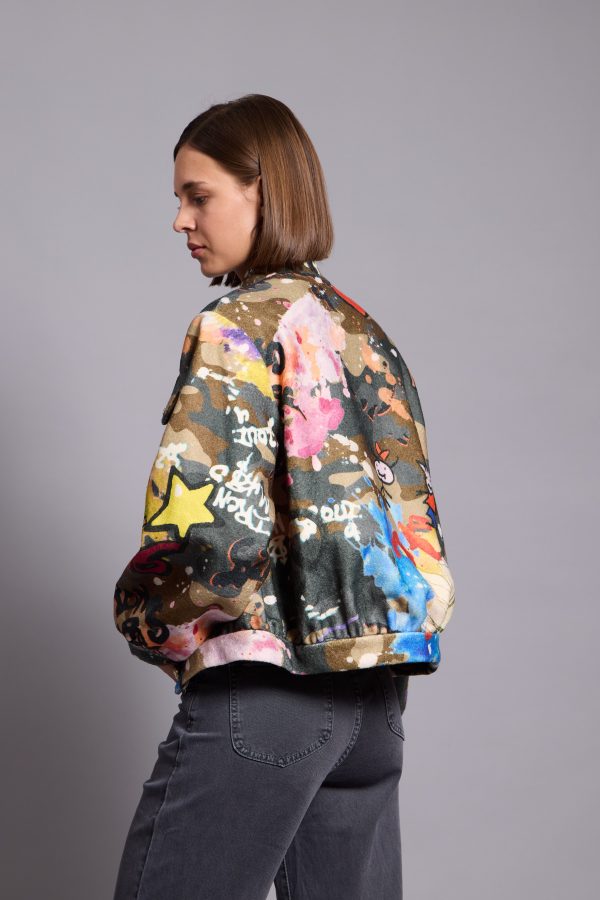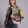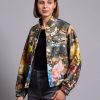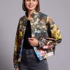 Tiana bomber jacket is made from viscose and polyester blend that’s cut in a classic bomber shape . It has a utilitarian-style and an elasticated hem and a gold button. It has a cropped hem and is detailed with flap pockets. Though quite utilitarian, the blouson sleeves give it a more feminine feel. Wear yours with jeans or a slip skirt.